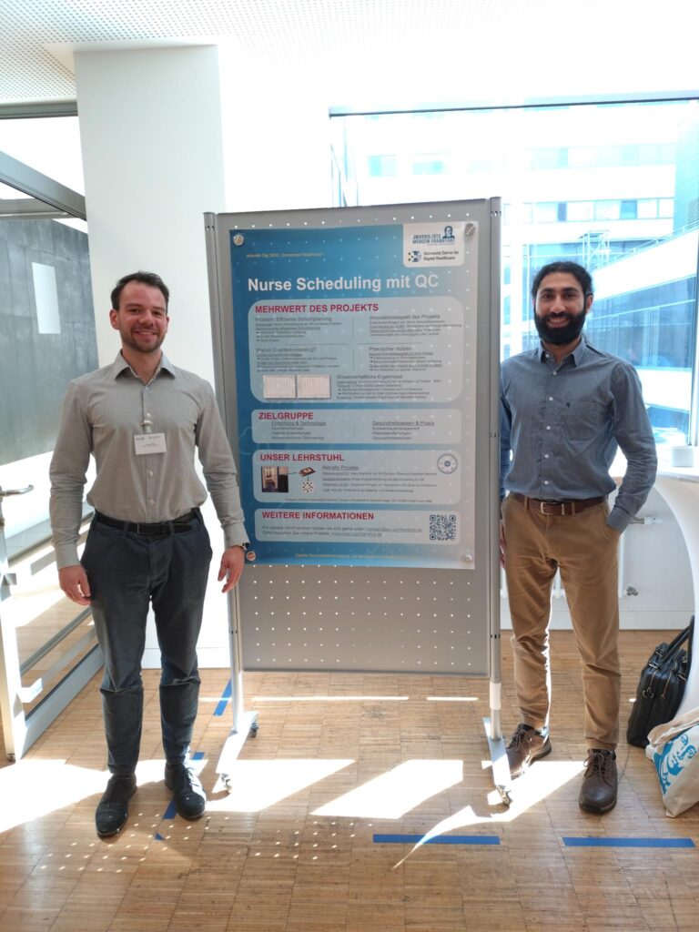 The program focused on innovation and digitalization, with presentations highlighting both practical applications and forward-looking technologies. Together with Dr. Manpreet Jattana, Lucas Menger contributed a talk on quantum computing and the Nurse Scheduling Problem. Using a quantum annealer and a concrete example, the presentation illustrated how quantum technologies can address complex optimization tasks in healthcare. The session aimed to encourage the audience to reflect on possible use cases and sparked discussions about future collaborations.